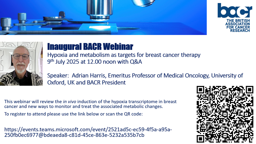 In this first BACR Webinar, our president Adrian Harris (Emeritus Professor of Molecular Oncology at the University of Oxford) provided a tour de force on how hypoxia affects the behaviour of breast cancer cells and how this knowledge is being translated into new therapeutic strategies.